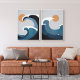 Este verde azulado arte de terracota oscuro presenta olas oceánicas abstractas y puesta de sol. Ideal para los amantes de la buena decoración costera.