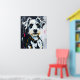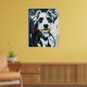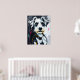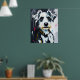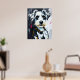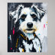 Terrier Bar cubierto de pintura después de un día de problemas juguetones. Resumen en blanco y negro descargable con salpicaduras de color