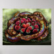 Huella de arte surrealista, serpiente serpiente serpiente serpiente boa arco iris cuida un montón de fresas . Derechos de autor de arte para Erin Cooper