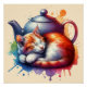 Póster Tetera de gato acuarela