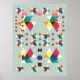 El diseño geométrico moderno de formas repetidas y colores superpuestos sobre un fondo gris verde claro hacen que cualquier pared parezca casi futurista.