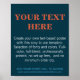 Poster negro de texto moderno personalizado. Añade tu propio texto para personalizar. Mostrado en blanco, naranja, azul sobre turquesa. Excelente poster para autores, escritores, bloggers, editores, editores, poetas, autores independientes y otras personas de biblioteca, adolescentes, bandas, o cualquiera que quiera un poster personalizado! Ideal para librerías, cafés, ferias de libros, eventos y talleres de autores, retiros de escritores, regalos y más. El cliente puede personalizar todo el texto, las fuentes y los colores con las herramientas proporcionadas en el menú de personalización de Zazzle. Por favor visite nuestra tienda, Bookles, para descubrir nuestra creciente gama de productos, y por favor contáctenos si necesita cualquier ayuda.