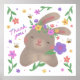 A cute illustration of a bunny with flowers with the text "Thank you!"