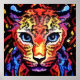 A striking, multi-colored geometric illustration of a leopard’s face, blending vibrant reds, blues, yellows, and purples in a bold mosaic style. The faceted shapes and vivid contrasts create a powerful, modern, and expressive animal portrait that grabs attention and adds an energetic artistic flair to any space. Perfect for lovers of wildlife art, contemporary design, and eye-catching statement pieces.