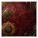 A richly detailed scene of golden instruments, mystical diagrams, and arcane symbols — set against a deep crimson backdrop.