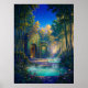 A tranquil sanctuary rests within a grove of towering bamboo, where soft light filters through the trees and glows against ornate architectural details. Gentle steam rises from still pools of water, surrounded by lush foliage and delicate blooms. The scene evokes a sense of quiet retreat and restoration, offering a peaceful escape into a serene and dreamlike natural setting.