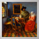 Bring quiet Dutch elegance to your space with “The Glass of Wine” by Johannes Vermeer. Set in a sunlit interior, the scene captures a refined moment of conversation and courtship, where a young woman sits at a table while a gentleman offers a drink. Vermeer’s signature light pours through the leaded window, picking out the sparkle of glass, the softness of fabric, and the rich patterns of the tablecloth and tiled floor.