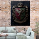 Bring the grandeur of medieval art into your home with this châteaucore gallery wall art print. Shield divided per pale in deep burgundy and forest green, a stylized raven as the central charge, supported by two oak branches, a crown above, a banner below reading "In Umbra Floresco" makes this art piece perfect for dark academic, gothic, and medieval-aesthetic interiors — this piece create an atmospheric wall that feels centuries in the making