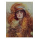 The Lure Of The Green Eyes by English artist William Henri Barribal. Art Deco vintage illustration depicting an elegant young lady from the roaring twenties with luring green eyes and bright green gemstones jewelry, fashionably dressed in fox brown fur and with big feathers on her hat.