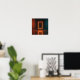 A neon portal suspended in mid-air, framed by two walls of light. At the center, the sky opens like a mirage to another dimension.