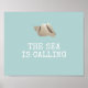 "The sea is calling" is the message on this pretty beach themed poster, but it can be customized to make it personalized with your favorite seaside town, your family name, or quote. Illustration of a conch shell set against a soft blue green background makes it perfect for any beach house decor.