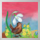 The Eurasian wren is a brown pea-coloured singing bird. We recognize it by a tiny and thickset body with a raised tail. Although the smallest European bird with the shortest wings, it has a very strong voice. We can observe it in humid forests, gardens, hedgerows, near springs, streams and marshes. The snowdrop and the wren bird summon the spring Poster. Snowdrop on early spring. Playful and colorful spring motif. Illustration about Spring Theme. Gift for nature and bird lover. Nursery decoration motif. Spring home decor. It's the time for new beginnings, optimism, new seasons, signs of spring, hope, courage, change. Snowdrop, primrose flowers and bird decorative design for Spring Easter.