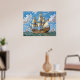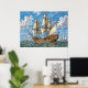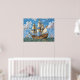 A majestic sailing ship with large billowing sails traverses a vibrant blue sea under a cloud-dotted sky. Other ships can be seen in the distance, highlighting the scene's nautical theme.