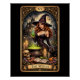 A seductive witch stands before a bubbling cauldron beneath a full moon, surrounded by dark magic, ancient symbols, and eerie companions.