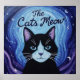 Este caprichoso poster presenta un gato de esmoquin rodeado por un sereno cielo nocturno blanco y azul violeta, con el mensaje The Cats Meow justo encima de él. Terminado con una pintura al óleo.
