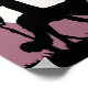 Una elegante silueta art deco de moda de mujer y perro frente a una brillante luna blanca, un rosa polvoriento con silueta negra.