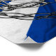 El símbolo de Escocia, el cardo Guardian, en un diseño cromado de nudo celta que domina la bandera de Escocia.