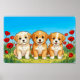 Póster Three Cute Puppies & Red Poppies