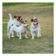 The image depicts a moment of pure joy and companionship between three Jack Russell Terrier dogs on a lawn. The story here is one of instinctive connection; they seem to be in the midst of a strategic pause during intense play, with attentive gazes and tongues hanging out, demonstrating vitality. This photo is special because it captures the expression of genuine happiness and group dynamics, highlighting the agility and alert temperament that make these dogs favorites among active families. The composition focuses on the trio, creating a narrative of friendship and healthy outdoor fun.