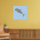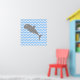 Personalizado de un tiburón gris con un fondo de zigzag azul claro y blanco.