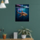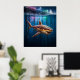 Arte de tiburón de donut feroz con un tiburón aerodinámico formado a partir de texturas de donut glaseado, superficies de glaseado pulido, llovizna de chocolate, cristales de azúcar y acentos espolvoreados. Cortando a través del agua oscura del océano debajo de un muelle de neón brillante con pilotes de madera, rayos de luz de luna, reflejos de carnaval, burbujas a la deriva y luces distantes de la pasarela, este diseño de fantasía emocionante se siente audaz y moderno. Perfecto para salas de juegos, casas de playa, cocinas, habitaciones de adolescentes o decoración de paredes llamativas.