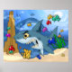 Tiburón personalizado entre los peces. Ilustracion ©2021 Michael C. Paul https://mikepaulart.com