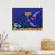 Este tiburón tiene dientes que fueron desgastados por intentar atacar botes, y ahora debe mendigar por su comida. Como no puede deletrear, lleva un cartel con un crudo dibujo de un pez y una flecha que apunta hacia su gigante, abdominal, casi desdentado maw. Un pez cercano señala y se ríe de este tiburón triste. Ten lástima por este tiburón, y compra este poster de tiburón fresco para los amantes de los animales acuáticos en tu vida. El tiburón azul hambriento gracias.