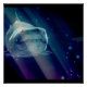 Un bonito diseño místico que muestra un tiburón de aspecto fantasmal en el océano azul profundo.