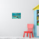 Impresión poster de tiburones de arrecife de punta negra y peces mariposa durante el submarinismo de la clara laguna azul de la isla pacífica de Bora Bora, cerca de Tahití en la Polinesia Francesa.