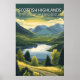 Lleve la belleza atmosférica del norte a su hogar con este impactante Póster de viaje de las Tierras Altas de Escocia. Esta ilustración celebra la esplendor natural y crudo de las Tierras Altas, desde los picos dentados de los Cairngorms hasta las ruinas históricas del castillo de Urquhart que se asoma al agua.