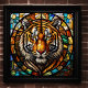 Tigre de color de agua con estilo de vidrio templado La relación de aspecto es de 1:1. Fue diseñado para ser impreso como 20"x20" 16"x16" 12"x12"