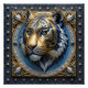 Esta obra de arte en 3D imita la artesanía de un metalero de orfebre especializado en oro, plata y otros metales preciosos. Presenta un retrato de tigre 3D en tonos oro y plata metálicos, ambientado con un fondo de hojas de estilo barroco muy detalladas. La obra se imprime para capturar las texturas ricas de los efectos visuales de los elementos metálicos.