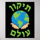 Póster Tikkun Olam Cute Planeta Hebreo Diciendo Hannukah