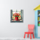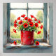 Un magnífico ilustracion de acuarela ai, con adornos rojos en un café de lata roja, se puede sentarse en un alféizar de ventana en un día de verano.