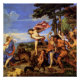 Bacchus y Ariadne de Tiziano, 1522-1523, representan a la mujer Ariadna de la mitología griega, abandonada en la isla de Naxos. El dios Bacchus salta hacia ella desde su carro impulsado por un par de chitas antes de una procesión de sátiras, ninfas y juerguistas. La interacción entre los tonos cálidos de la carne y la vegetación frente al mar azul frío y las nubes ejemplifica el renombre de Tiziano como colorista.