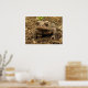 Una toad americana de aspecto gruñón (Bufo americanus) te está mirando desde este poster. Este pequeño anfibio es de color marrón, dorado, verde oliva y color naranja. Sus verrugas lo distinguen de sus vecinos de rana. Aunque los renacuajos se incuban en el agua de estanques, ríos, lagos o arroyos, pronto se mudan a tierras donde los sapos viven sus vidas adultas. Su sorprendente llamada es un largo grito. Se ve bastante feroz, pero en realidad es un pequeño tipo gentil que come muchas plagas de jardín incluyendo insectos y babosas.