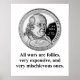 Diseño con una imagen de Benjamin Franklin y la cita: Todas las guerras son locuras, muy caras y muy maliciosas.