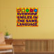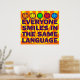 Todo el mundo sonríe en el mismo idioma y se enfrenta a un poster.