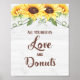TODO LO QUE NECESITAS ES AMOR Y DONAS LETRERO DE FIESTA - TEMA DE GIRASOL - 8x10".