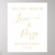 Todo lo que necesitas es amor y pizza Señal de bienvenida de boda de pareja personalizada para una barra de pizza en oro