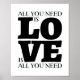 Un tratamiento gráfico divertido con la frase "Todo lo que necesitas es AMOR es todo lo que necesitas". Fácil de Personalizar, sólo tiene que cambiar el color de fondo impreso.