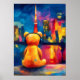 Póster Tokyo Teddy Neon Skyline Night Reflection