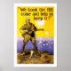 Poster australiano de la Primera Guerra Mundial por Harry T. Weston, 1915, que representaba a un soldado en una colina sobre una batalla naval, probablemente haciendo referencia a la Batalla de Galípoli donde se perdieron muchas vidas australianas.
