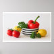 Póster Tomates, Pepper, Parsley, Tazón de rayas negras
