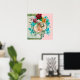 Elegante, colorido, vibrante diseño floral de estilo vintage con un bebé y una cigüeña voladora entre las hermosas rosas romanas, rosas rojas, verde azuladas flores de primavera azules de Bulgan Lumini (c). Fácil de personalizar con tu propio texto e inizials para duchas de bebé, fiestas de cumpleaños para niños, o casi cualquier evento que quieras!