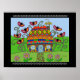 Una cigüeña trae buena suerte a esta casa pysanka al anidar en la chimenea. Cuelga a este poster en tu casa para traerte buena suerte o enviártelo como regalo de Pascua.