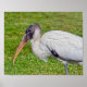 "Tormenta de madera juvenil" por Catherine Sherman. Una joven cigüeña de madera visita un parque de Florida, donde los pescadores están probando su suerte. La cigüeña de madera (Mycteria americana) es un gran ave americana en la familia cigüeña Ciconiidae. Anteriormente se llamaba "ibis de madera", aunque no es un ibis. Se encuentra en hábitats subtropicales y tropicales de las Américas, incluido el Caribe. El plumaje es en su mayoría blanco, excepto la cola y algunas plumas de ala, que son negras con un lustre verdoso-violáceo. El menor difiere del adulto, pues el primero tiene una cabeza de plumas y una cuenta amarilla, en comparación con la cuenta de adulto negro. Los sexos son similares.