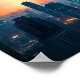 Una tormenta azota sobre una ciudad futurista, con rascacielos iluminadores. Una escena urbana dramática y cinematográfica.