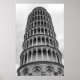 Póster Torre de Pisa Italia de inclinación blanca y negra