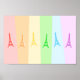 Una hilera de la Torre Eiffel se moldea en colores arcoiris.